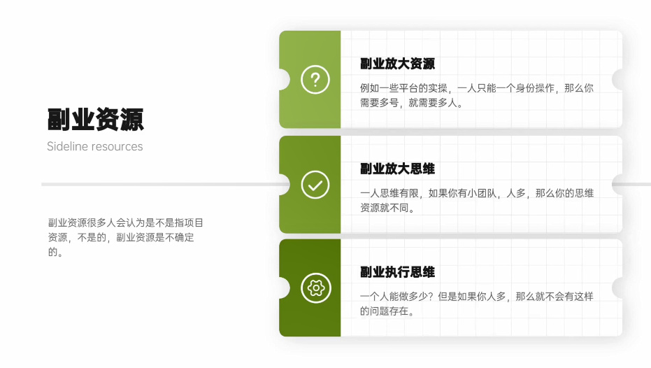 前面也说了,做项目必须要有副业资源,遇到好的项目,我们就快速进行放大,这要求你具备先进的思维能力,资源放大能力,执行能力等等。