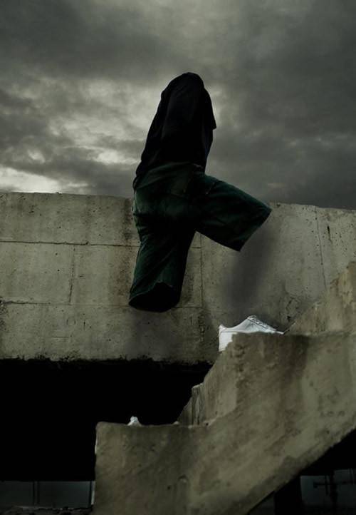 3.我们将下载的素材进行适当的变形拼合,形成左腿的形状,注意边缘的飞溅效果,这样才有动感和真实感,如图: