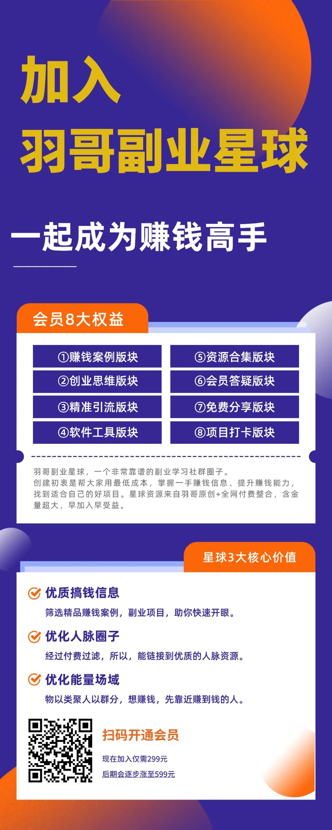 副业掘金训练营会员,可以免费学习以上所有课程内容,同时获取羽哥副业星球+羽哥创业课堂会员权限,其资源全部免费学习。