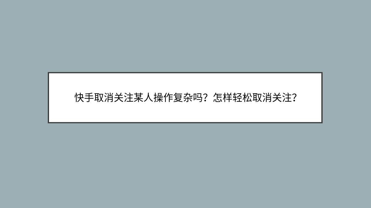 快手取消关注某人的操作并不复杂。以下是轻松取消关注的方法: