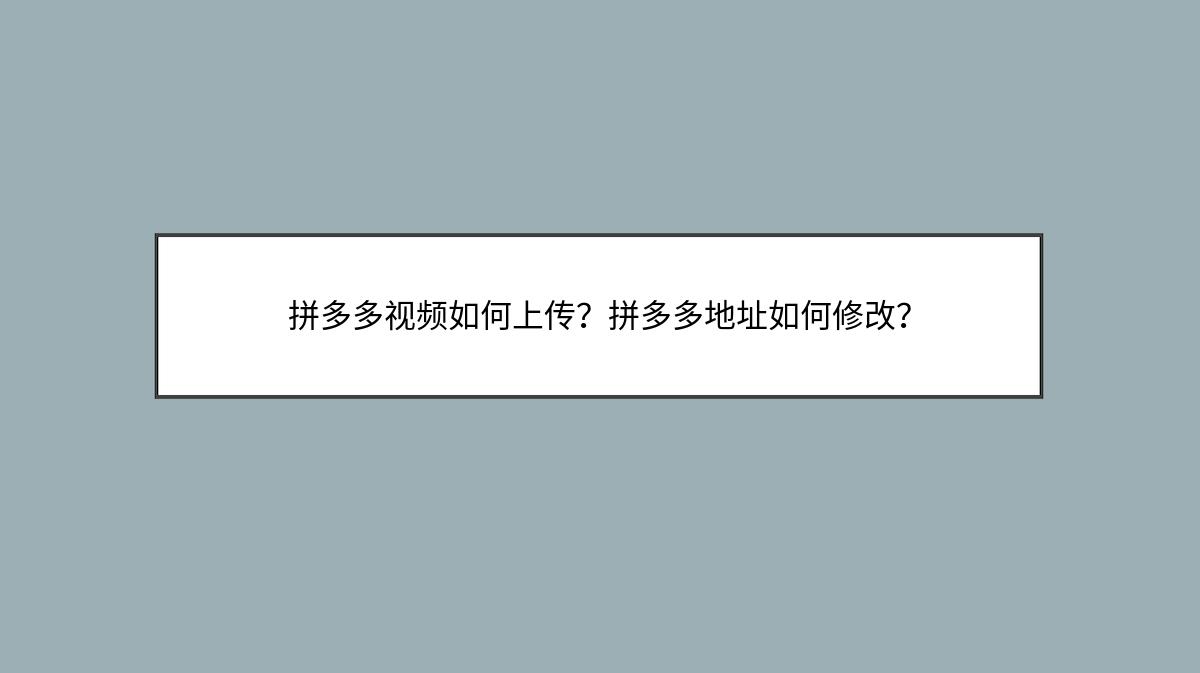 关于拼多多平台的使用,以下是上传视频和修改地址的基本步骤: