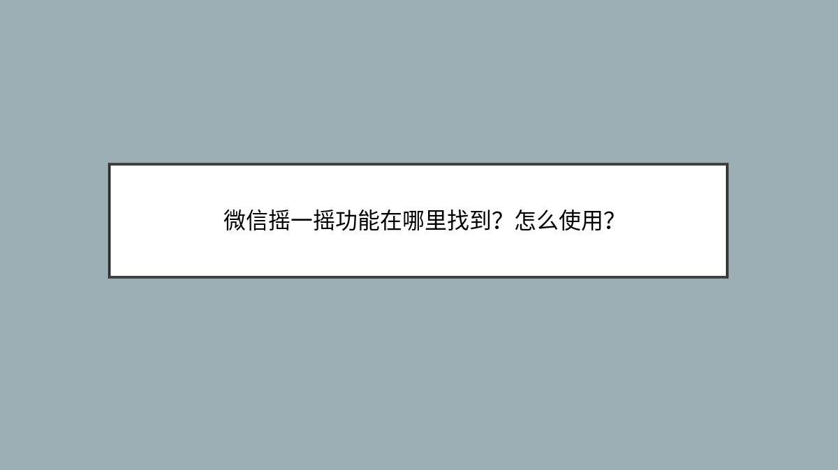 微信的”摇一摇”功能是一种很有趣的互动方式,可以让你通过摇动手机找到同一时间也在摇手机的其他微信用户,以及查看一些随机的内容。
